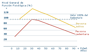 El deterioro que el paso de los años produce en los diferentes aparatos y sistemas es general, pero no se da de igual manera en personas que han practicado actividad física a lo largo de su vida y las que no. De hecho, son muchos los estudios que ponen de manifiesto que a partir de los 40 años, las personas que llevan una vida sedentaria sufren un deterioro mucho más rápido que las que han llevado una vida activa.